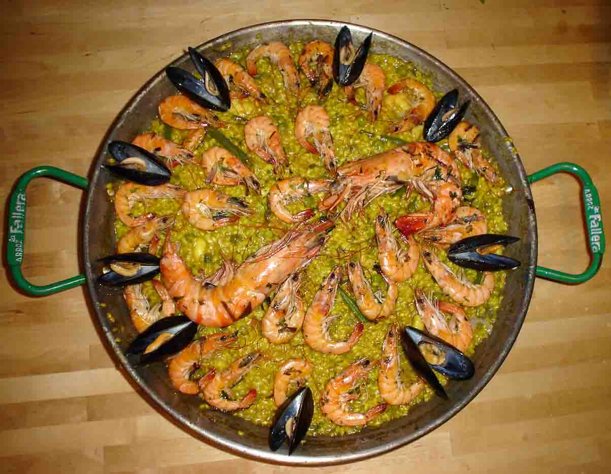 Valencia's gastronomy is based on natural products that are at the origin of the so-called Mediterranean diet, a healthy cuisine simply prepared. For this reason, the local countryside and the sea are the main providers for Valencia recipes, outstanding of which is the "paella", which can be of meat, shellfish or mixed, holding pride of place on the menu. Rice, of course, is also used in a majority of typical dishes, prepared in a wide variety of ways from rice in the oven (al horno), "a banda", prepared with fish, or also black rice done in squid's ink in which it is served. Fish is the main item in many typical recipes such as "all i pebre", a dish of eels seasoned with garlic and pepper, or "fideuà", made of noodles in fish and shellfish broth. Valencia also offers a wide variety of sweetmeats which, for the most part, are based on cereals and nuts as inherited from Moorish culture. To be tried are the "rosegons", the "arrop i talladetes", or the pastries made of the extract of a kind of sweet potato called a boniato and "cabello de angel" or "angel's hair", made from the extract of a type of local melon. These are popular at Christmas time. For drinks, a wine list exists with a guarantee of origin whose texture and taste have already carried its fame beyond Valencia' s borders. A glass can also be filled with "Valencia water", a mixed drink of orange juice and sparkling wine which adds a delicious touch to Valencia's gastronomy.